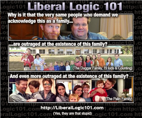 Liberals are not outraged at the existence of the Duggars , or the Palins. They are simply pointing out the hypocrisy. When Conservative Republicans talk about family values they are outraged at the thought of Lena Dunham sexually touching her sister at the age of seven , or a gay couple adopting a child , but excuse the behavior of someone like Josh Duggar ( a Christian hypocrite ) sexually molesting his sisters when he was a teenager , and Bristol Palin having children out-of-wedlock , because they are Conservative Christians. It’s called a double standard , which they apparently are immune to.