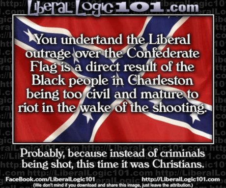 No , liberals were not outraged that black people did not riot in the wake of the Charleston shooting. They were outraged that a white supremacist by the name of Dylann Roof murdered nine people. They were outraged that the Conservative media shamelessly defended a flag that represents centuries of slavery , Jim Crow , and racism. They were outraged that the media bent over backward to deny that it had anything to do with race. They were outraged that every time an unarmed black individual is wrongfully killed by law enforcement , they are condemned by the media as thugs , criminals who got what they deserved. They were outraged that every time there is a shooting by a Muslim American , all Muslims are assumed terrorists. They were outraged that every time there is a shooting by a white supremacist , they are classified as lone wolves. They were outraged that the media portrayed the event as if the motive were a hate crime against Christians , instead of what it was really about : Racism.