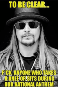 fuck anyone who consider themselves defenders of free speech , but get offended at the thought of anyone expressing their first amendment rights in a way they don’t approve of. And that includes Kid Rock. Go fuck yourself.