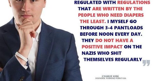Conservatives see this joker as some kind of intellectual. Which is funny , since this is the genius who came up with the brilliant idea for conservatives to wear diapers on college campuses to own the libs. Some intellectual ; a guy who feels the need to put on a pair of diapers every time he gets triggered.