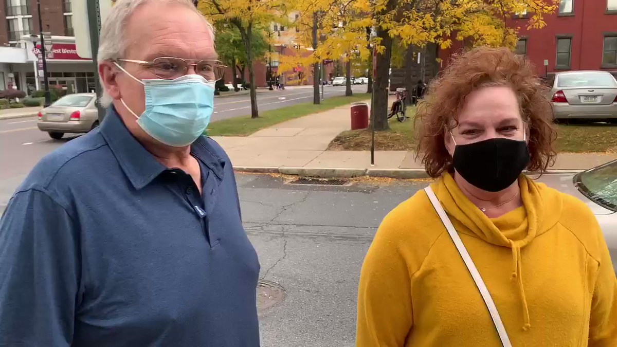 Marans spoke to one particular Trump voter now planning to vote for Biden. Michael Scott, a chef by trade, who was present with his wife Lee Kuczynski, a food service worker and a Biden supporter. Both were wearing masks.