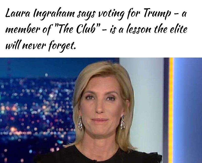 Laura Ingraham Urges Trump Voters To ‘Teach The Elites And Their Lackeys A Message’ By Re-electing A Lackey For The Elites
